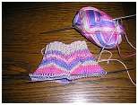 I auctioned 500 grams of sock wool on Ebay a while ago, and even though the colours are a bit experimental, I can knit socks now, and more socks, and some more. And Ipod covers!
