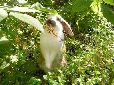 Photo number 1: the bunny in the garden. She looks fluffy! She always hops back into her cage, too.